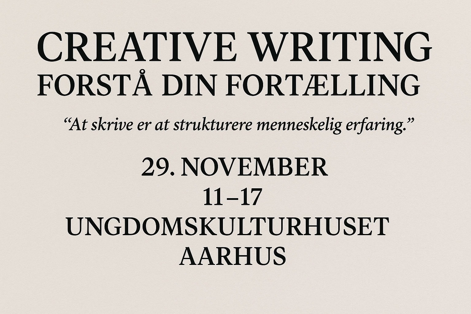 Workshoppen er åben for alle – uanset erfaring. Det eneste, du behøver, er nysgerrighed og lysten til at skrive.