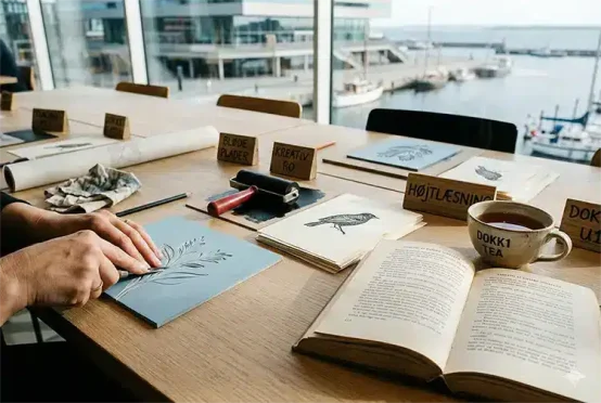 Trænger du til at trække stikket og lade roen sænke sig over et kreativt projekt? Du inviteres til en helt særlig formiddag på Dokk1, hvor de kombinerer det klassiske håndværk med litteraturens stemningsfulde univers. Mens du skærer dine egne motiver i bløde linoleumsplader, vil der blive læst højt, så du kan lade tankerne vandre og finde inspiration i ordene. Det er en oplagt mulighed for at få en pause fra hverdagens larm og nyde en stille stund i selskab med andre voksne, der værdsætter fordybelse.